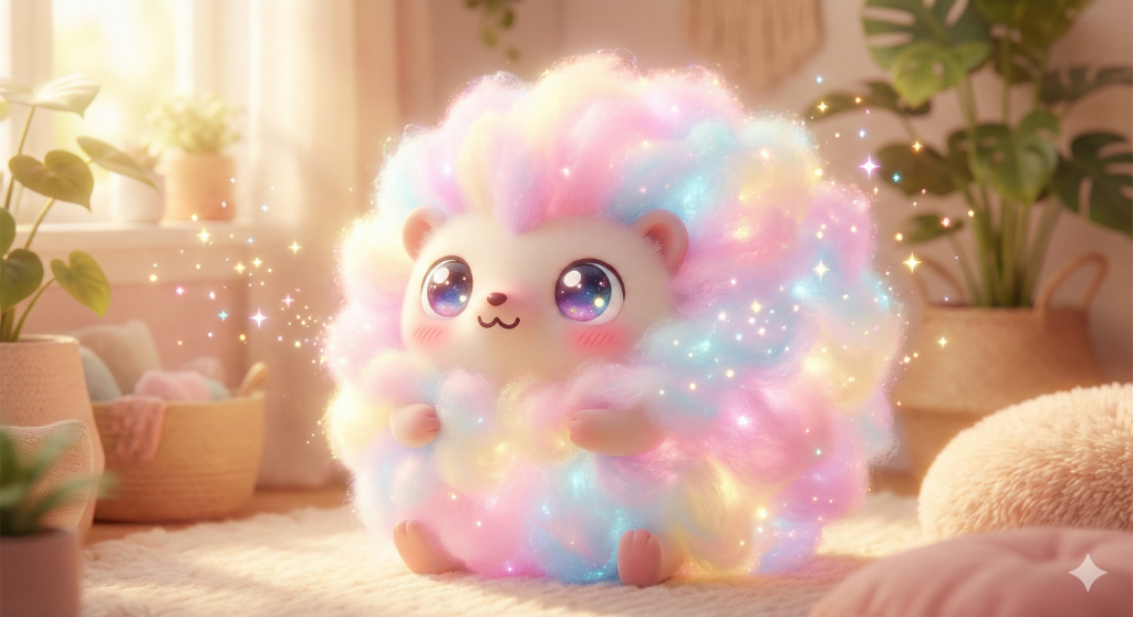 A fluffy, cotton-candy-like magical creature. Wraps children in warmth and gently sparks their imagination and creativity. Expert in dreamy adventures.