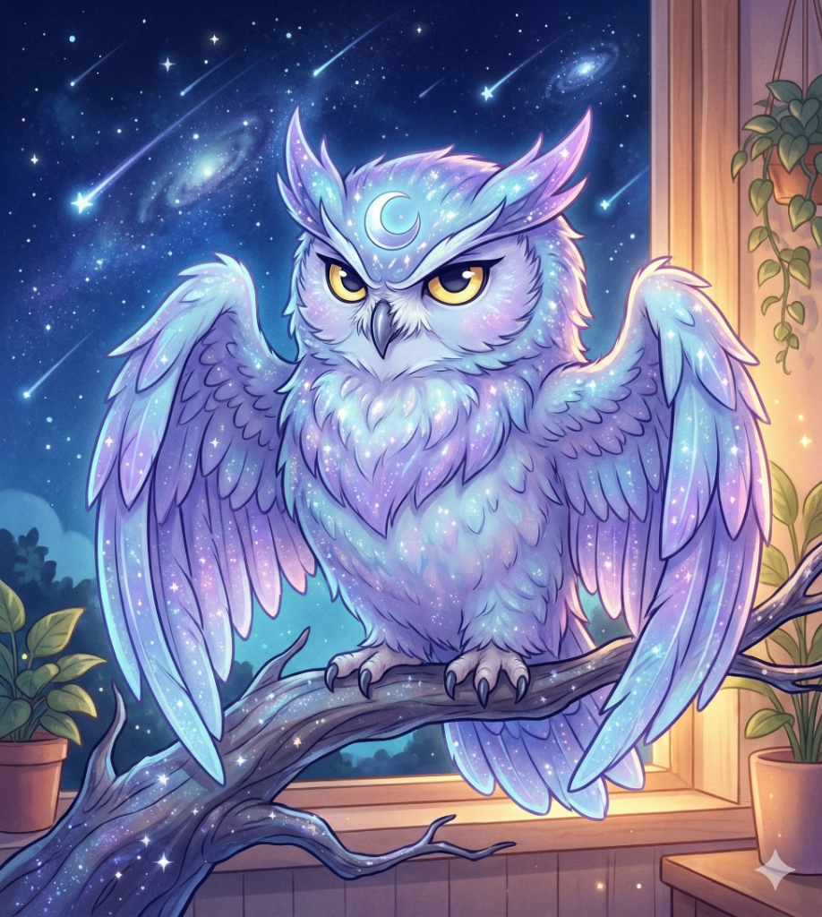 A wise, gentle star-owl who knows the secrets of the night sky. Teaches beautiful words and expressions. Offers starlit wisdom when stuck on plot.
